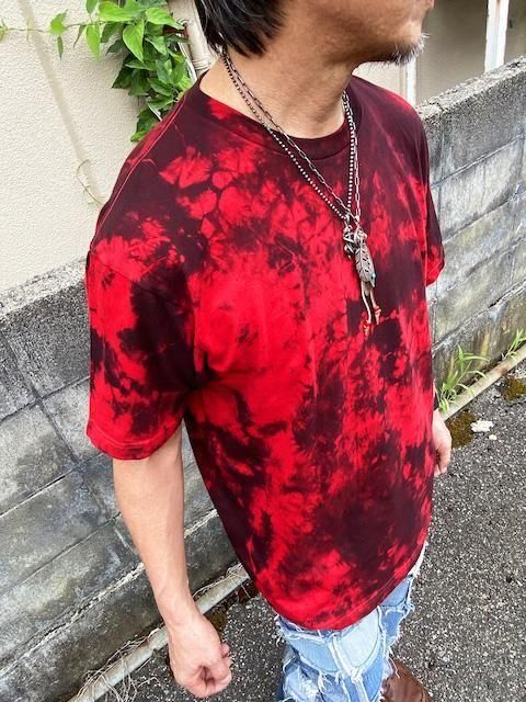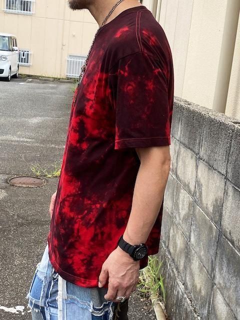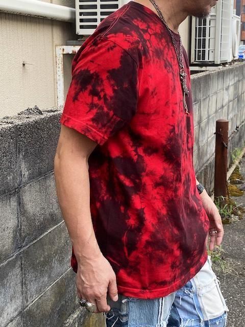 タイダイ Tシャツ XLサイズ ブラック×レッド ムラ染め Hippies Dye