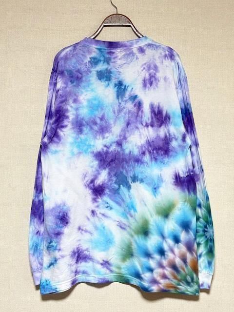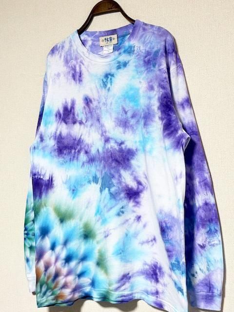 タイダイ 長袖 Tシャツ Lサイズ 曼荼羅模様 ブルー×パープル ムラ染め