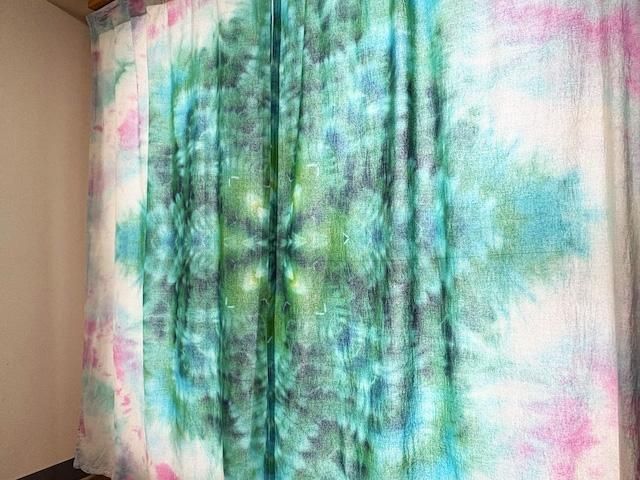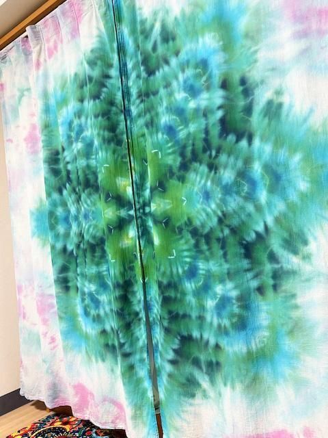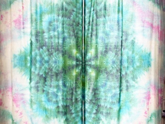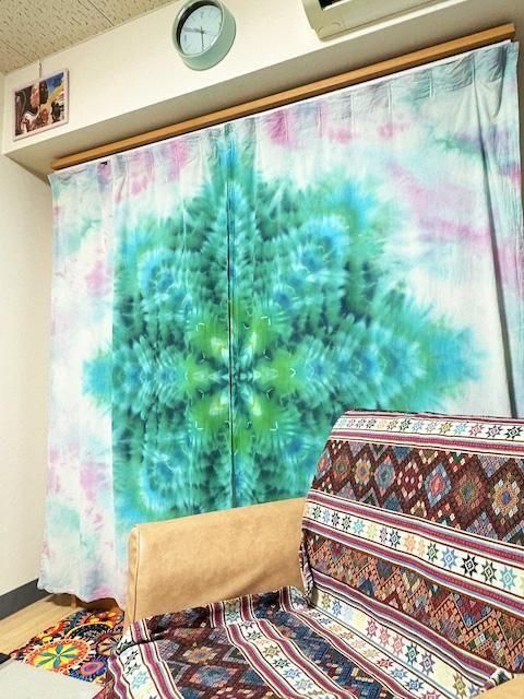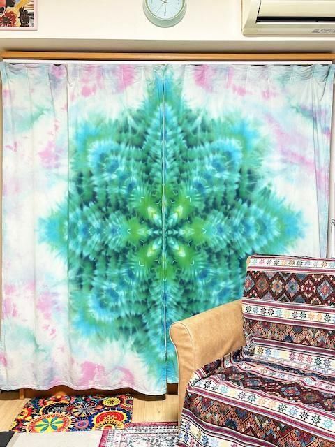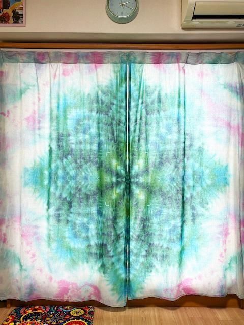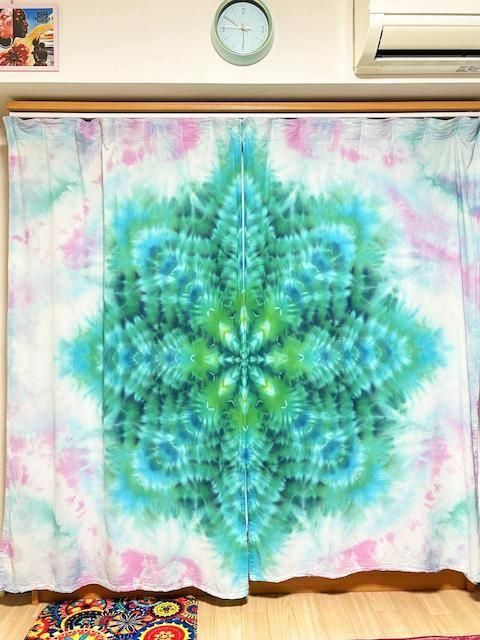 「タイダイ染め カーテン 美しい幻想的な翡翠色のスノーフレイク」