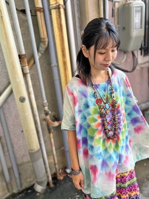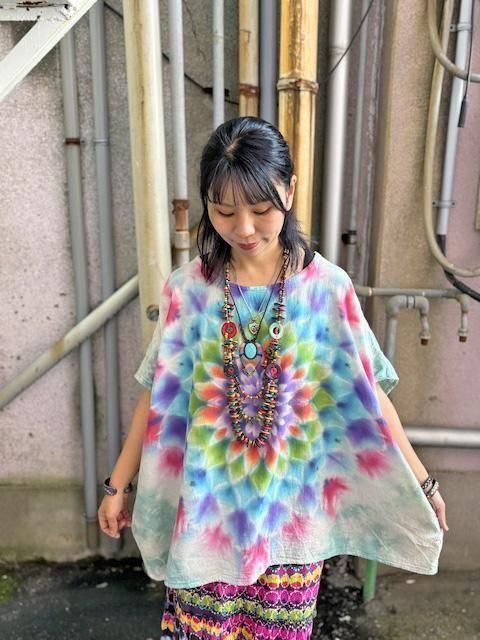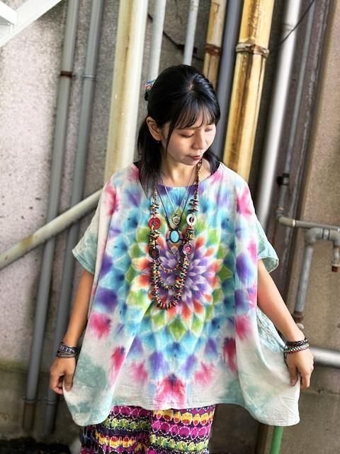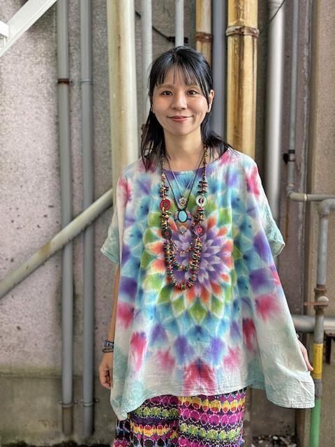 幻想的な曼荼羅模様が施されたタイダイ染め 新型ブラウス