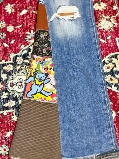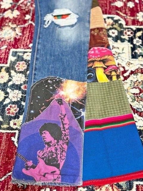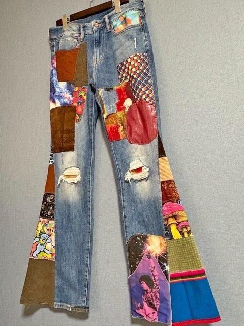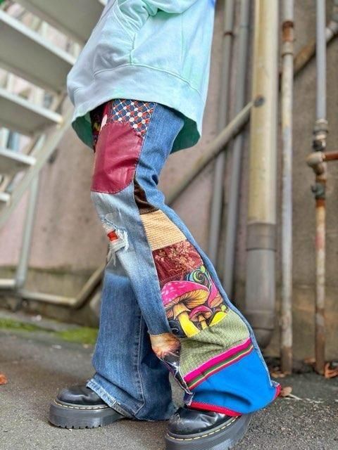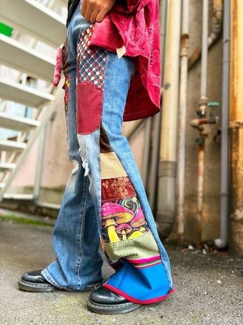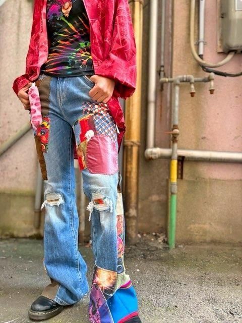 個性あふれる生地を組み合わせた、世界に一本だけのリメイクデニム。