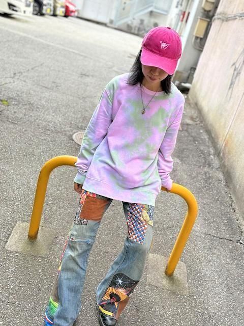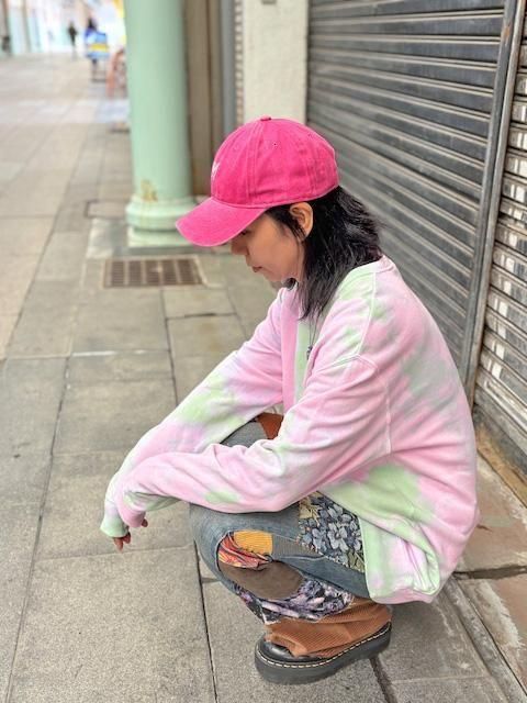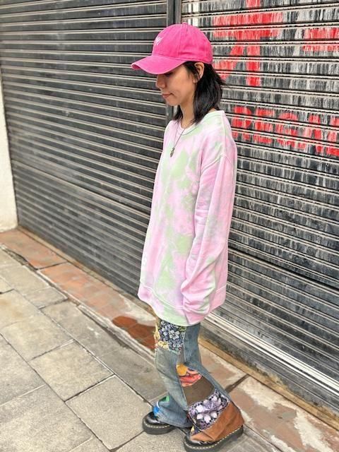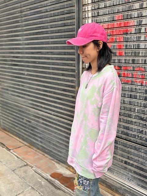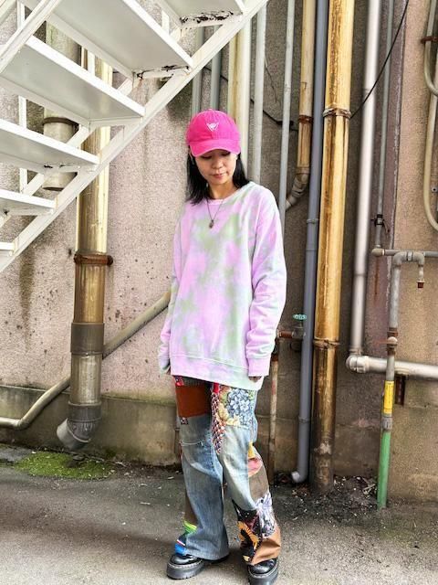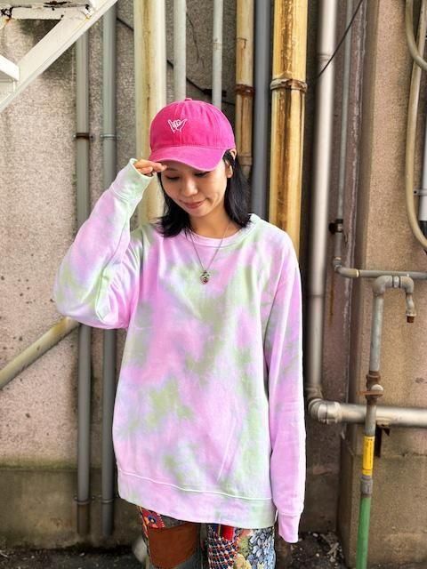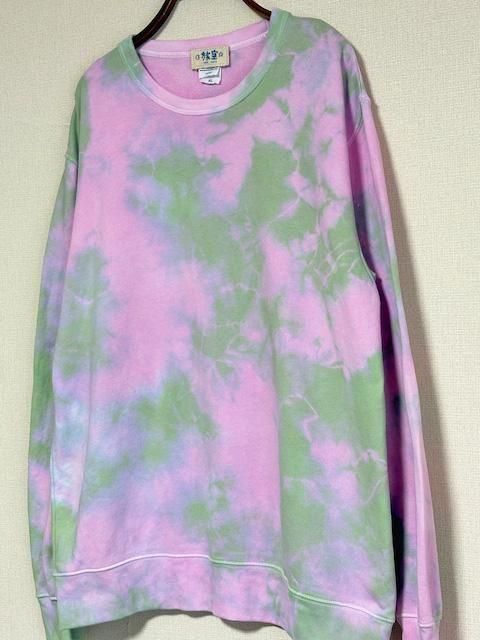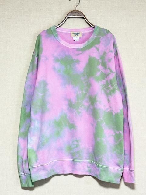 タイダイ スウェット トレーナー XLサイズ ピンク×グリーン ムラ染め