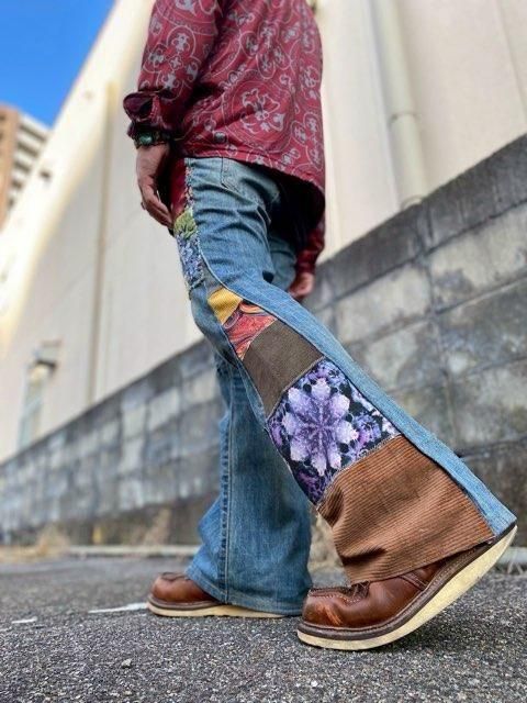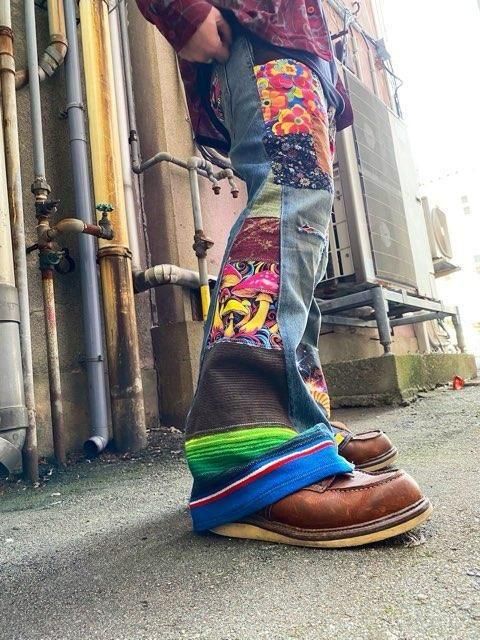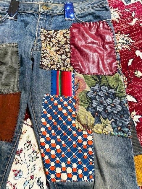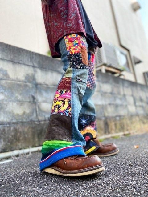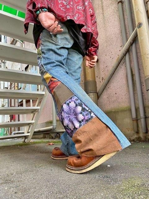個性あふれる生地を組み合わせた、世界に一本だけのリメイクデニム。