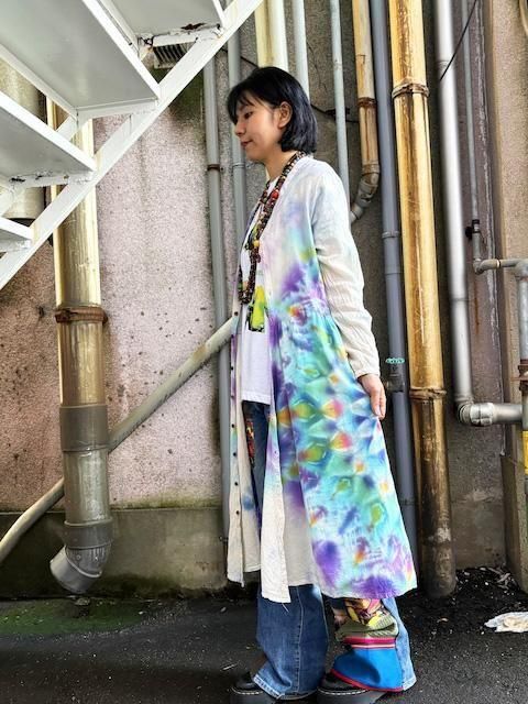 タイダイ染め前開きのロングワンピースで、おしゃれを存分に楽しんでみてはいかがでしょうか?